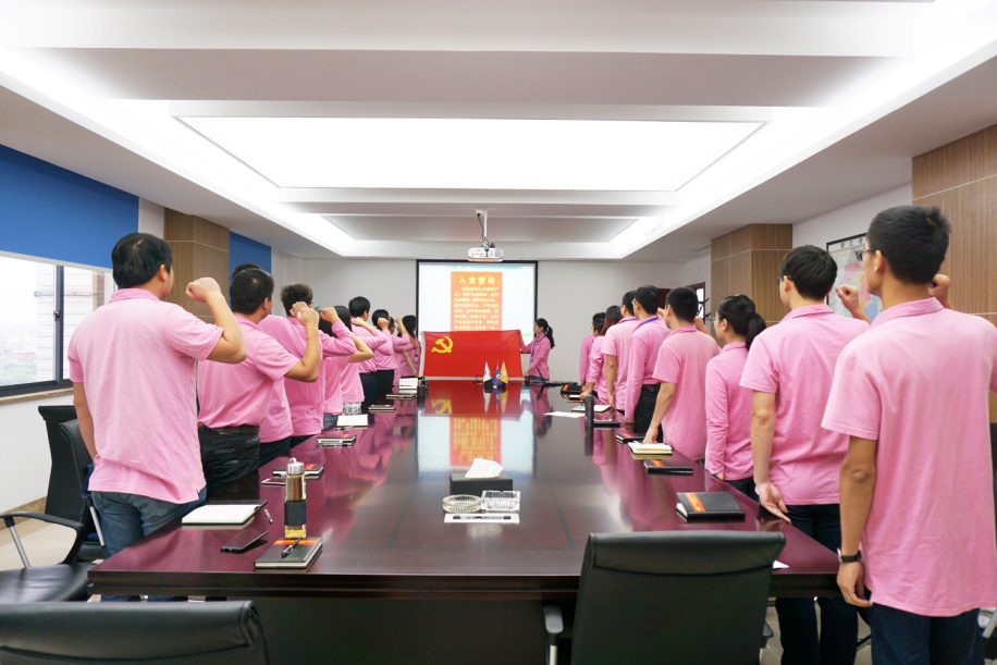 大會開幕當天,公司全體黨員佩戴黨徽,齊聚會議室,舉起右拳,面向鮮紅的黨旗,一起莊嚴地重溫入黨誓詞,以昂揚的姿態和飽滿的熱情聆聽十九大報告,學習十九大精神。